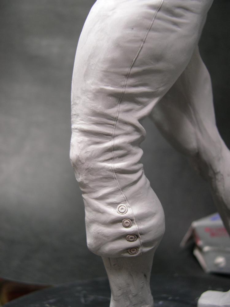 今年最後の更新です。 あんまり進んでないんですが、 シワをちょっと調整したのと裾にボタンをつけました。 で左足だけつめた状態で焼いてます。 右足と同時にはやりずらいので。 今日は大みそかということで今年を振り返ってみると、 商業原型をはじめてやらせてもらって、やっと原型師 として出発できたという感じですね。 オリジナルの風神雷神も販売し、決して安くない物ですが 買って下さる方もいて、注文のメールが来るたびに感動中! 原型の依頼をして下さる企業様、ガレージキットを買って下さる お客様、このブログをチェックしてくださってる方々、 個人的に応援してくれる知人などすべての人に感謝です! まだまだ技術的に足りない部分が多いし、スピードも 遅いので課題だらけではありますがこれからもがんばって やっていこうと思いますよ。 ・・・硬いな。 来年の目標は、 ●フランケンを完成させる ●風神雷神のスケッチ集をコピー本かなんかで作る ●じゃあついでにフランケンのスケッチ集も ●商業原型ももっとがんばる ●ほったらかしにしてしまってるモデラをもっとテストして原型制作に活用する とりあえずはこんな感じでがんばっていこうと思いますよ。 それではみなさんよいお年を! 来年も東工房をよろしくおねがいいたします~