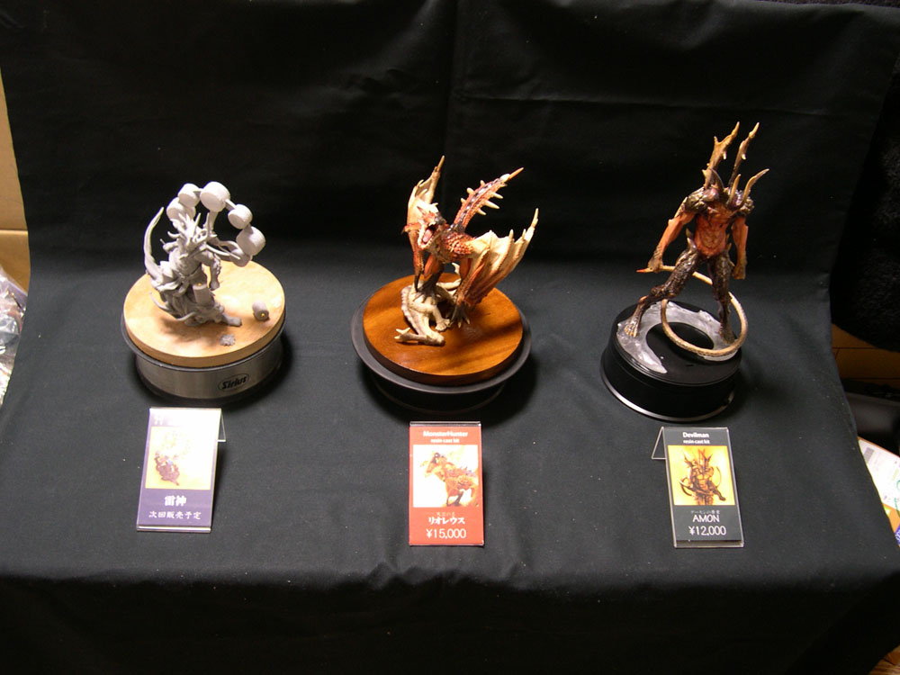 明日の昼前には出発します。 雷神とか、持っていく物の準備して早めに寝よう。 ・ あと今回、「自分の作ったキットに関して」製作代行の受付を してみることにしました。 去年のワンフェスとかで 「ほしいけど、作れないな~」 とかっていう話し声がブースの向こうから聞こえてきたり してたので、そういう人が買おうと思うきっかけになったらと。 ま~そう思う人がほしいのは安価なPVCの完成品ってことかも しれないけど・・・ 自分自身ガレージキットの組み立ては得意ではないけどやったら やっぱり楽しいし、模型を趣味にする人がもっと増えたらな~ と思うんですけどね~。 でもやっぱり準備にいろいろ手間もかかるし塗装でにおいも出るし 始めにくい趣味ではあるのかなとも思います。 うまい人の作例見たりすると自分にできるかと尻ごみしちゃったり もするし。 むずかしいな~。 製作代行に関しては特に経験があるわけではないですが、 当日展示している見本を見て頼んでみてもいいかと思う方は 気軽にご相談ください。 それでは日曜日、 A09-10 ブース名「東商店」 でお待ちしております~。